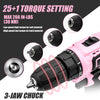 This 25-position torque selector features minimizing the likelihood of overdriving or snapping screws. 3/8’’ keyless chuck helps to fasten screws in seconds, no worry of screws loosens while at work. You can easily fine-tune the drill’s operation for basic tasks, from furniture assembly to boring holes into the wall, making your job easier to tailor the drill to the materials you’ll be working with.