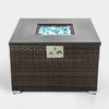 High-quality, weather-resistant wicker is woven over a sturdy, steel frame, with a durable fabric cover to ensure this fire pit table will withstand the elements